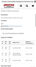 NOTE: part number: 88650-06671 • 88650-06671 = “WITHOUT Auto A/C” • It is designed for manual climate control systems • It will not work correctly in a Camry with automatic climate control Quick way to check your car Look at your AC control panel: • ❌ No “AUTO” button means it is Without Auto A/C, which is the correct part • ✅ Has “AUTO” and temperature numbers → With Auto A/C, this part will NOT FIT YOUR CAR. This is a genuine Toyota OEM amplifier/control module used in the air-conditioning system (air conditioner amplifier assembly / control module In Excellent working condition and Covered by 30 days warranty.