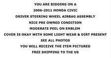 2006-2011 HONDA CIVIC. DRIVER STEERING WHEEL AIRBAG ASSEMBLY. YOU WILL RECEIVE THE ITEM PICTURED. SEE ALL PHOTOS. 160 E. PLUMSTEAD AVE, LANSDOWNE PA 19050.
