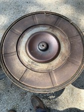 The 1957 Cadillac Original Batwing Air Cleaner Assembly is a vintage part made in the United States by Cadillac. This air filter assembly features a classic batwing design and a painted finish, adding to its nostalgic appeal for collectors and enthusiasts of vintage Cadillacs. The authentic brand and country of manufacture further enhance the authenticity and value of this unique piece for classic car restoration projects. This piece is in overall excellent condition with some minor rusting and some very minor dents that can easily be fixed.. It appears to be painted at one point. This air cleaner can be restored to show condition.