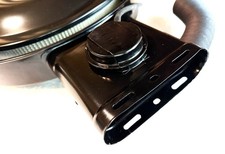 The base has been refinished in low-gloss black to present a period correct image. The oval 6" snorkel is in good condition, feeding air through the functional ThermAC pre-heater, and into a clean base with the factory air deflector.
