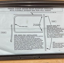 1949-1950 Tudor Sedan rear quarter window glass felt kit anti rattlers with flexible felt division bar insert. Does both sides, left and right. Made in USA.