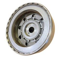 E40D Transmission Forward Drum 4 Clutch. This full-spline forward drum is also compatible with C6 transmissions. This used part is checked for outer and inner spline wear. Only heavily burned and black clutches are rejected.