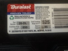 The Duralast 26-DL battery is a lead acid battery designed for car and truck use. With a cold cranking amperage of 525, it offers reliable starting power even in cold weather conditions. The top post terminal design makes it easy to install and connect to the vehicle's electrical system. With a BCI group number of 26, this battery is compatible with a wide range of vehicles and provides dependable performance for extended periods.