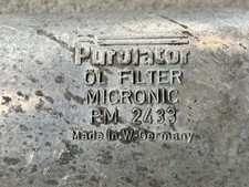 BMW M30 3.5L Oil Filter Housing with Flange. Fits models such as the E12, E28, and E23 735. Manufactured by Purolator. Various number on parts including 1266545, 11421716584, PM2433, and 1266373. Removed from a 1986 E23 735.