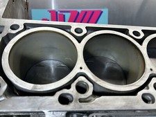 Very low mileage block. I have only cleaned the block. I have not honed anything. Standard bore 4.00 and may clean up with a hone as its only minimum wear. Block to head deck surfaced are untouched as you can see the original stamping on the block deck.