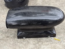 The HARWOOD Dragster Bolt-On Fiberglass Hood Scoop in black is a performance part designed to enhance the exterior of a vehicle. Made of fiberglass, this semi-universal hood scoop is bolt-on for easy attachment. It is a racing body kit accessory that is sure to add a sleek and sporty look to your car. Ideal for car enthusiasts looking to upgrade their vehicle's performance and style, this hood scoop is a must-have for those seeking to personalize and enhance their driving experience. Measures 22.5 x 13 7/8