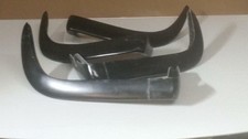 THE BUMPERS ARE IN NICE SHAPE NOT CHIPPED OR CRACKED AT ALL. THEY ARE IN BLACK GELCOAT NOT SANDED, SO WITH ALITTLE WORK THEY ARE READY TO PAINT.
