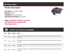 **Fast same day shipping if order is placed prior to 1PM EST typically.** DIRECT FITMENT FOR 98-02 ONLY. FITS 93-97 WITH MODIFICATIONS. The caliper has been tested to ensure that the piston can be compressed and that the slide pins aren't frozen.