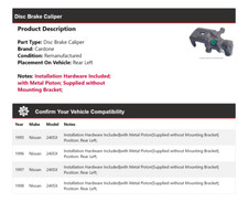 This is a new brake caliper All of my parts come from buyout, liquidation, and overstock sales. There are no issues unless otherwise stated. No shipping outside of the continental United States