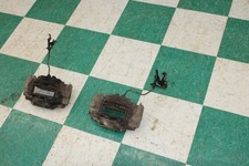Good used condition. See photos. They fit either side. One order comes with two good bolts. A 14mm socket is used to remote and install these bolts. They hold the caliper to the caliper bracket. See last photo for an example of where these go.