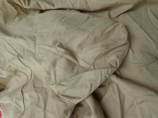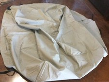 The larger cover, a cab cover, is a camo green color with a white padded lining. Barely used with a few spots of mud or dirt. The smaller is a bikini top, I believe. The color is brown “spice”. The only issue I can find is a small 1/4” burn hole.