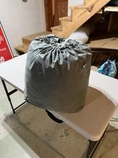 Used but almost brand new. I used this only a couple winters in storage and under a roof, The material this is I'm not really certain? But looks, feels durable and feels waterproof. I purchased this cover for my ice cream high roof Dodge Promaster 2500 van for winter storage when I wasn't doing any business in the winter selling ice cream as this type business is seasonal and I originally purchased as I can recall for $200+ but will sell for $80.00 this shouldn't be too difficult to ship as gross weight counting the bag it's in is around 14 #pounds and in bag standing is 33''-34''.