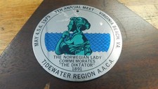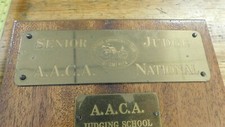VERY NICE AND EXTREMELY HARD TO FIND ORIGINAL VINTAGE AACA TROPHY PLAQUE FROM A LIFELONG COLLEcTION WE ARE HELPING SELL OFF. THESE WERE FROM A VERY WELL KNOWN AACA MEMBER AND JUDGE WHO SPENT HIS LIFE RESTORING AND PERFECTING HIS COLLECTION OF VEHICLES, THIS IS AN ORIGINAL TROPHY PLAQUE FROM HIS COLLECTION. ALL ORIGINAL AND READY TO ADD TO YOUR COLLECTION. FEEL FREE TO ANY QUESTIONS. BE SURE TO CHECK OUR OTHER AUCTIONS FOR MANY OTHER HARD TO FIND VINTAGE TROPHYS AND OTHER AACA ITEMS. ALWAYS HAPPY TO COMBINE SHIPPING ON ORDERS. FORDBUILDINGSHELFQ TROPHYLOT.