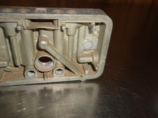 Block has number 6500 stamped in it. Accelerator pump passage is open. Block was removed from a core carburetor. Has one gasket locating dowel broke off. See pics for condition.