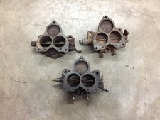 Ford Flathead carburetor parts lot. There are multiple years and styles of the Holley 94 / Chandler Groves bodies, horns, bases, hardware, etc. The threads in the air horns are in good shape (these would commonly strip out). The floats all seem to be good but one is dented. Ask questions before bidding.