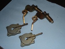 Holley carburetor 50cc accelerator pump cover arm lot. Lot includes (2) covers and (2) arms. Removed from a core carb. See pics for condition.