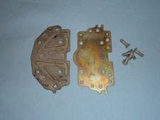 set of accelerator pump covers from a 4776 double pumper. these are flat and not warped, that is what the last two pictures are showing. these are somewhat clean but I would recommend taking a brush and some carb cleaner to them before you use them.