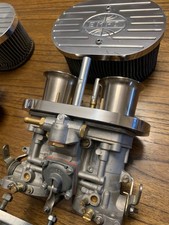 This is a excellent set of freshly rebuilt 44 idfs with empi billet air filters and empi manifolds, manifolds do have a port in them with a plug see last picture they are made in Spain.
