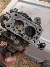 This carb has been sitting on a warehouse shelf for years and is being sold as-is. The doors open and close but stick a little. Likely needs a full cleaning, restoration, or parts before use.