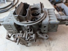 Part Number: Holley List 3140-1 GM: 3868864 Date Code: 5B2. This carb carburetor body and parts is in good structural condition with no cracks or breaks seen. The mounting flange is missing and will need to be replaced, as seen in the pictures.