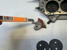 Will need base plate(not all base plates fit this) or welded if possible.Second picture points at broken ear. NO choke plate or linkage for it(will require one more base screw). Will need rebuild kit.