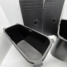 Complete set of rear in floor storage bins with covers and screws. These will fit 13-18 1500,2500, or 3500 trucks. They will also fit 19-25 2500/3500 (will NOT fit 19+ 1500's as they are designed for a different size compartment) Includes the main compartment; the plastic insert; the top cover in charcoal, and the screws needed to install everything. Includes all pictured in the condition as pictured. Buyer is responsible for making sure these fit your exact model/optioned truck before bidding!