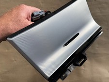 OEM storage in located under the radio in the dash. Take out is in good shape. There are a couple of small nicks that are pictured. Does have black trim as seen in pictures. Door opens and closes as it should.