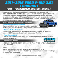 This ECU ECM PCM fits the following: 2012 Ford F150 3.5L EcoBoost.