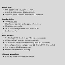 This is apre-flashed GM PCM ready to drop into your LS swap project — no security issues, no tuning hassle. 1999–2006 GM LS engines (Drive-by-Cable or Drive-by-Wire). Works with 4L60E or Manual Transmissions.