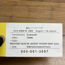 VIN: WBY2Z2C56GV675333 I12. 2016 BMW i8 Coupe B38. 2015 BMW i8 Coupe B38. 2014 BMW i8 Coupe B38. Engine & Transmission. 12329489808 / 9489808.