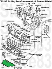 Radiator lower air deflector (between front bumper & core support) thoroughly cleaned and treated with silicone spray is as close to new as can be had. This was originally installed on all 1992, 1993, 1994, 1995, 1996 F-series & Broncos, and 1997 F-series >8500GVWR to improve A/C performance when stopped in hot weather.