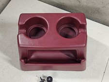1992-1997 OBS Ford F-150, F-250, & F-350 Front Bench Seat Floor Cup Holder Insert OEM. Good used condition, removed from a 1996 Ford F-150 with a Ruby Red interior. Shows normal light wear from years of use.