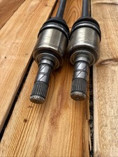 The product is a pair of front left and right CV axle shafts for Subaru Forester, Impreza WRX, and Crosstrek models. Made by TrakMotive, these drive axle front pieces are designed for easy installation on the left and right sides of the vehicle. The product comes with a manufacturer part number (Sb-8065) and a California Prop 65 Warning regarding potential health risks associated with the product. It is essential to consider this warning when purchasing and using the CV axle shafts to ensure safety and awareness of potential hazards. Low mileage used after market front axles, fits many Subaru models. Check and confirm fitment prior to ordering. Part number on axle is: SB-8065