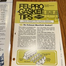 The product is a lot of 17 1983 Fel-Pro Gaskets & Sealants sales brochures focused on "Mechanics Value Tips." These brochures likely contain valuable information and tips for mechanics related to Fel-Pro head gaskets and sealants. The manufacturer part numbers mentioned are mixed, indicating a variety of parts included in the lot. This collection of sales brochures could be a useful resource for automotive enthusiasts and professionals looking to enhance their knowledge about engine gasket and sealant products from Fel-Pro.
