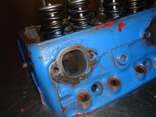 GM cylinder head, casting number 3917291 with date code (H147). Valves are 2.02/1.60. Heads have screw in studs and guide plates. Has been ported and has a dowel/bolt added to face of casting. Might need a light cleaning/freshen before use.