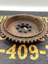 This is an original OEM1952 Harley-Davidson Sportster rear brake drum and sprocket in nice shape, complete with hardware as shown. The sprocket teeth and drum surfaces are solid with no cracks or repairs, showing only normal wear for its age.