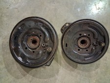 The product is a pair of original 1951 Ford Victoria car front brake drum hub assemblies. Working when removed to upgrade to disc brakes. These high-quality parts are made of durable cast iron and steel, with an inside diameter of 10 inches. The vintage pieces are manufactured in the United States and feature an unfinished finish. With a bolt pattern of 5x4.5, these brake drums are designed for placement on the front left and right sides of the vehicle, making them a perfect fit for restoring or repairing a classic Ford car.