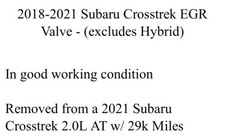 2018-2021 Subaru Crosstrek EGR Valve - (excludes Hybrid). Removed from a 2021 Subaru Crosstrek 2.0L AT w/ 29k Miles.
