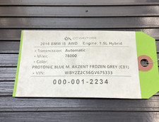 VIN: WBY2Z2C56GV675333 I12. 2017 BMW i8 Coupe B38. 2016 BMW i8 Coupe B38. 2015 BMW i8 Coupe B38. 2014 BMW i8 Coupe B38. Local Pick-up: If you prefer local in-person pickup, it is possible. The mileage and information about the donor's car can be found on the label in the pictures.