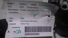 S10/S15/SONOMA 1998 -1999 Throttle Valve Assembly; 4-134 (2.2L). West Coast Auto Dismantling. No labor warranty is provided.