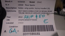 2017-2020 HONDA CIVIC SI SEDAN REAR TRUNK DECKLID SPOILER ASSEMBLY W/ 3RD BRAKE LIGHT OEM. CIVIC 2019. Make / ModelHONDA CIVIC. CIVIC 2017 -2020 Sedan, wing spoiler, factory installed (Si). No labor warranty is provided.