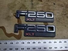 Ford OEM 1992 1993 1994 1995 1996 1997 F-150 F150 F 150 XLT black and chrome plastic 7 1/4" 7.25" front fender side emblem badge logo nameplate name plate in good condition with average wear. All of the mounting pins are good. It will need new adhesive for installation. There is no part number, so please review the pictures to ensure that this is the correct part for your application.