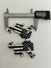 The Fender Emblem Black US Flag Pony Horse Tailgate Badge is a stylish accessory designed for Ford Bucking Bronco vehicles. 2 pcs Set - Fender or Tailgate Emblem Bucking Bronco Badges for Ford Bronco.