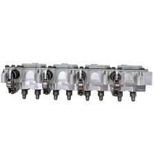 These have all new extended shafts, plated throttle plates, and new mixture screws and springs, with the correct GM linkage, carb arm. Leaky throttle shafts cause tri power idle problems. All bases are machined flat on both sides.