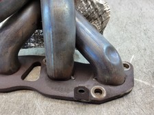 The product is a used 1981 Porsche 924 exhaust manifold, featuring a very rare OEM part number 048-129-591. Made of cast iron and in FAIR condition, this brown-colored manifold is designed for gasoline fuel type vehicles.