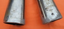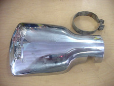 Came from a local estate. Measures approx. 7 3/4" long and 5" wide. Comes with the original clamp that's dirty and a little wonkey. I cleaned the top side with some steel wool, and it shined up real nice only showing a little light pitting in one area. Shows a couple of scratches above the emblem as shown. Bottom side is dirty with exhaust residue as shown. I did a little steel wool on the bottom to show that it will clean up. Wanted to leave the dirt on the bottom to show this was an original one and not some reproduction. Should fit well in the restoration of your old chevy.
