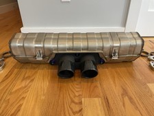 997 / 991 GT3 OEM Stainless Center Muffler & Tips - Low Miles OEM GT3 stainless steel center muffler with tips. Taken off a 997 GT3 with ultra low miles and stored ever since. Basically new, I'd eat off this thing! Even the original stickers are on the muffler, so it was probably never heat cycled. All side studs are perfect. Titanium tip hardware. Compatible with various models: 997.1 GT3 / GT3 RS, 997.2 GT3, 991.1 GT3, 991.2 GT3 / GT3 RS, 911 R, Speedster, GT2 RS (See the last photo in the gallery for all compatible models).