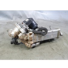 3 Series F30. This is the exhaust cooler and EGR valve assembly at the front of the engine. The exterior of the housing has minor surface rust in spots but no deep pitting. All mounting points and connectors are intact.