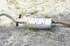 Used. Taken off my 2016 911 Carrera. I've had it in storage since 2021. It was taken off by a professional tuning outfit and replaced with an AWE part. The product is a used 2012-2016 Porsche 911 991 Carrera exhaust center muffler with the manufacturer part number 99111143104. Made of stainless steel and steel, this silver muffler features a clamp-on mounting style and is designed for the lower and rear placement on the vehicle. It is a genuine Porsche/Eberspacher product, crafted in Germany with a polished and uncoated finish. The muffler does not have universal fitment and is a non-performance part.