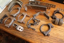Offered is a grab bag of exhaust hangers, tailpipe brackets, and misc from a cache of Mercedes 300, Horch, and other German marque parts. Applications unknown. Buyer to pay $14 shipping.